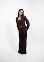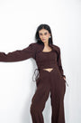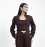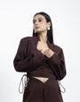 Structured cropped top with a square neckline, long sleeves, and adjustable side ties for a contoured fit.