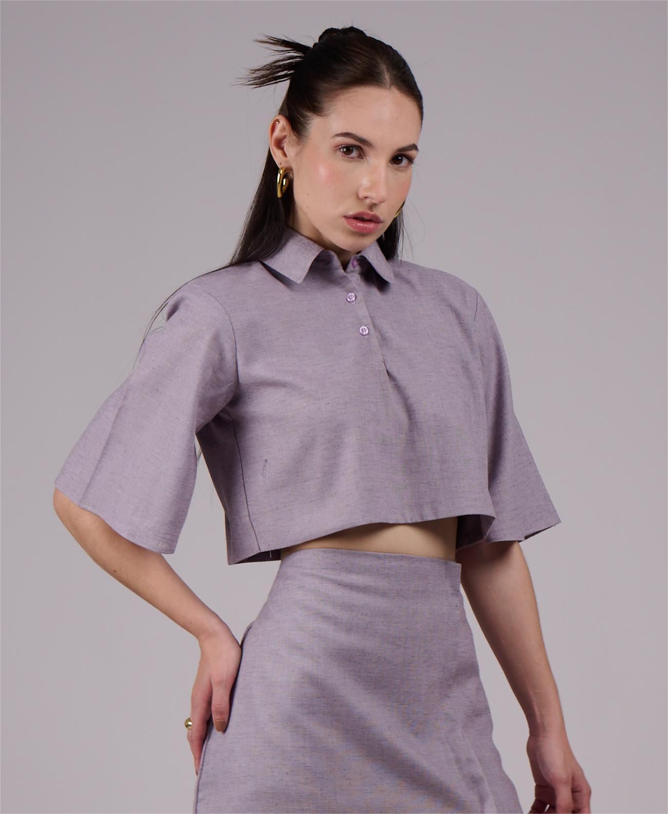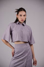 Cropped shirt top with wide sleeves and a clean, structured silhouette.