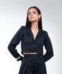 Tailored cropped blazer with a sharp lapel, single-button closure, and structured long sleeves for a sleek, elevated fit.