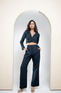 Modern co-ord set with a cropped long-sleeve top featuring side