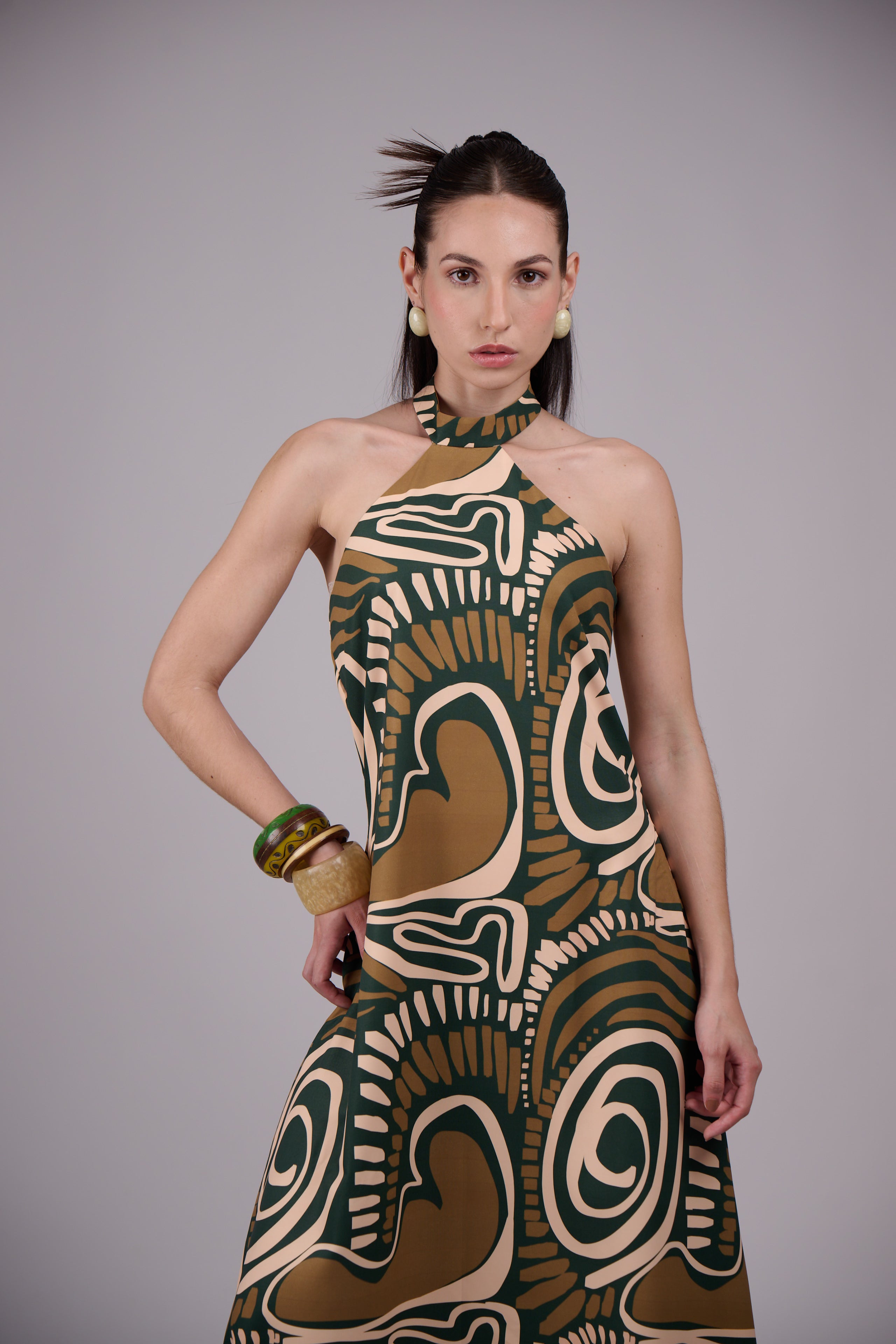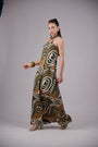 Statement halter-neck maxi dress featuring a bold abstract print