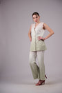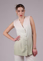 Sleeveless V-neck top with a clean button-down front and tailored fit.